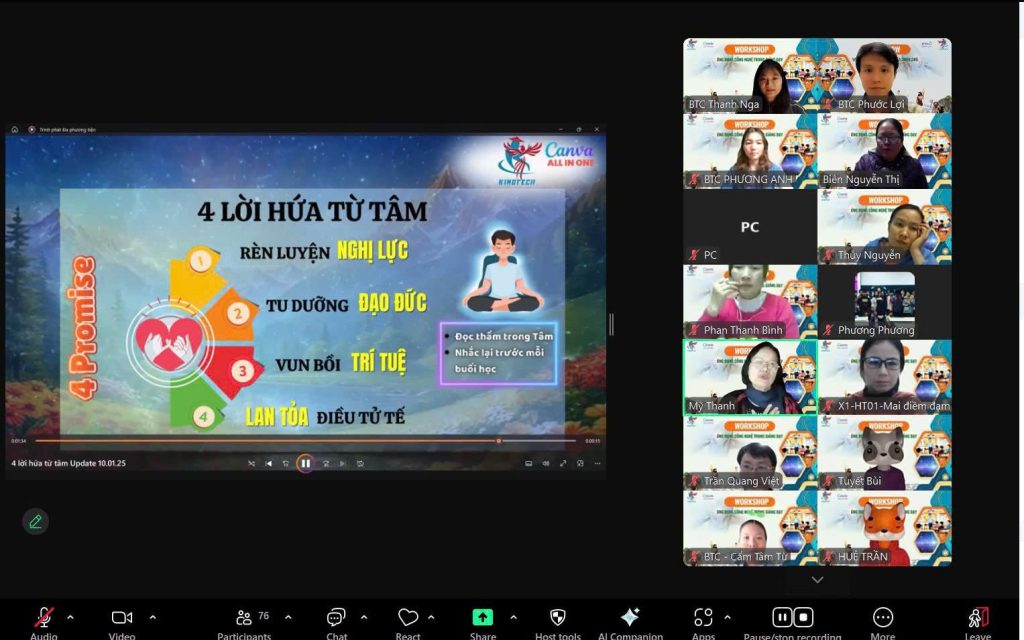 10 buổi học: học cơ bản đến nâng cao + dạy kèm phụ đạo + 1 buổi AI + thực hành tại lớp + bài tập về nhà + teamwork và talkshow cuối khóa cùng nhóm bạn tốt